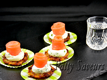 Such a flavorful appetizer that will tickle your taste buds, it is a shock of textures, first you feel the crispy hash browns, then the soft cream cheese will coat your palate and to top it all the wonderful flavor of smoked salmon will spread in your mouth, very addictive..