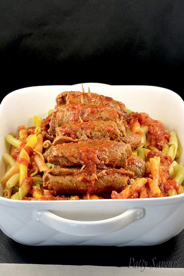 This is a meal from my childhood that I have always loved. To this day, whenever we visit my parents, my mother will wait for us with a tall order of beef bacon roll ups. She generally serves them with sautéed potatoes and on the following day she will cook pasta with the leftover marinara sauce all flavored with the beef roll ups aromas, Mmmmm!