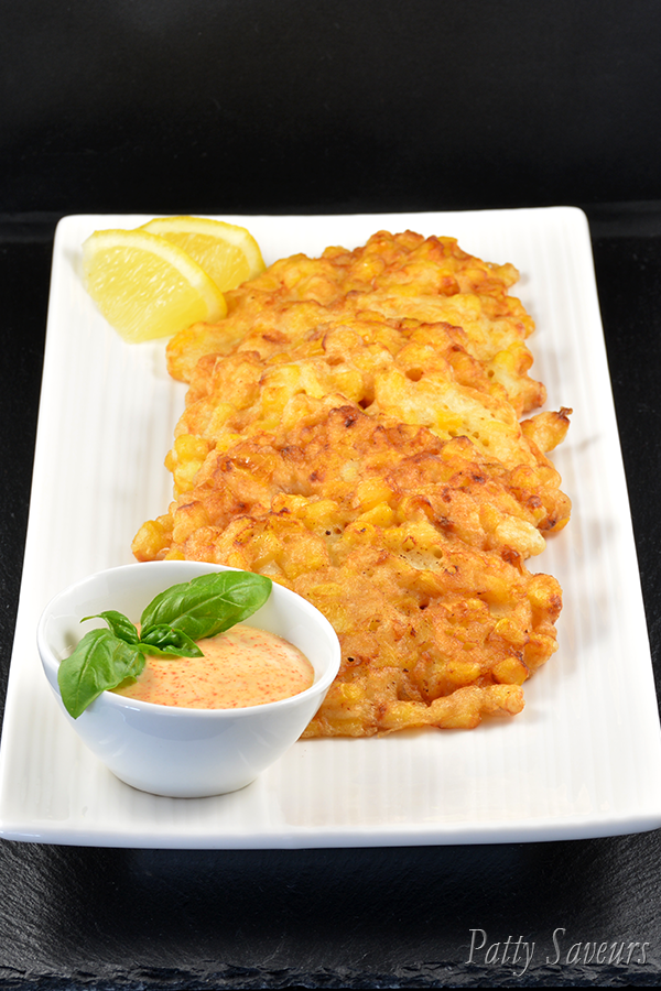 J’ai fait mes beignets avec du maïs en boîte que j’ai mélangé à une pâte à pancake un peu liquide. On peut rajouter des petits pois, des carottes râpées, etc. C’est un accompagnement qui change un peu et surtout c'est très avantageux.